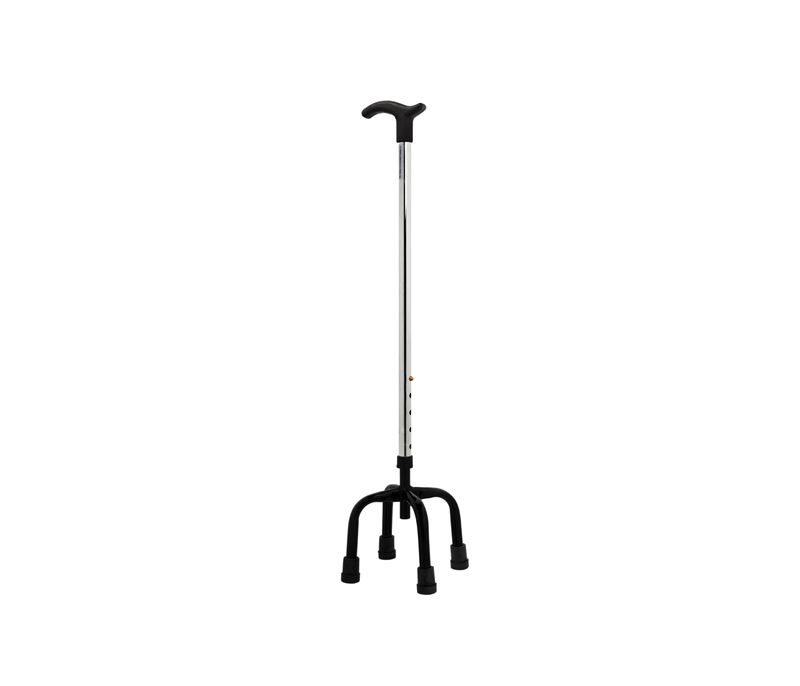 Indicado para auxiliar o equilíbrio na caminhada ou marcha. Com melhor sustentação devido às quatro pontas que aumentam a base de equilíbrio.